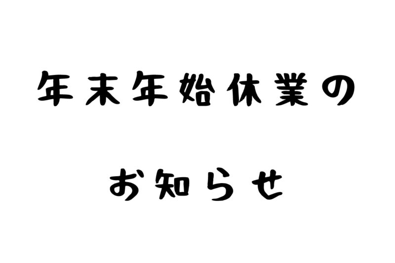 12/29(金)~1/6(土)まで年末年始の休業とさせていただきます。